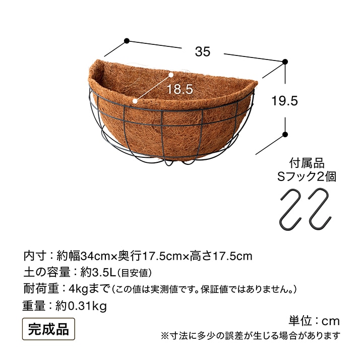 備考 : [土の容量]約3.5L(目安値)[耐荷重]4kgまで(この値は実測値です。保証値ではありません。)[付属品]Sフック2個